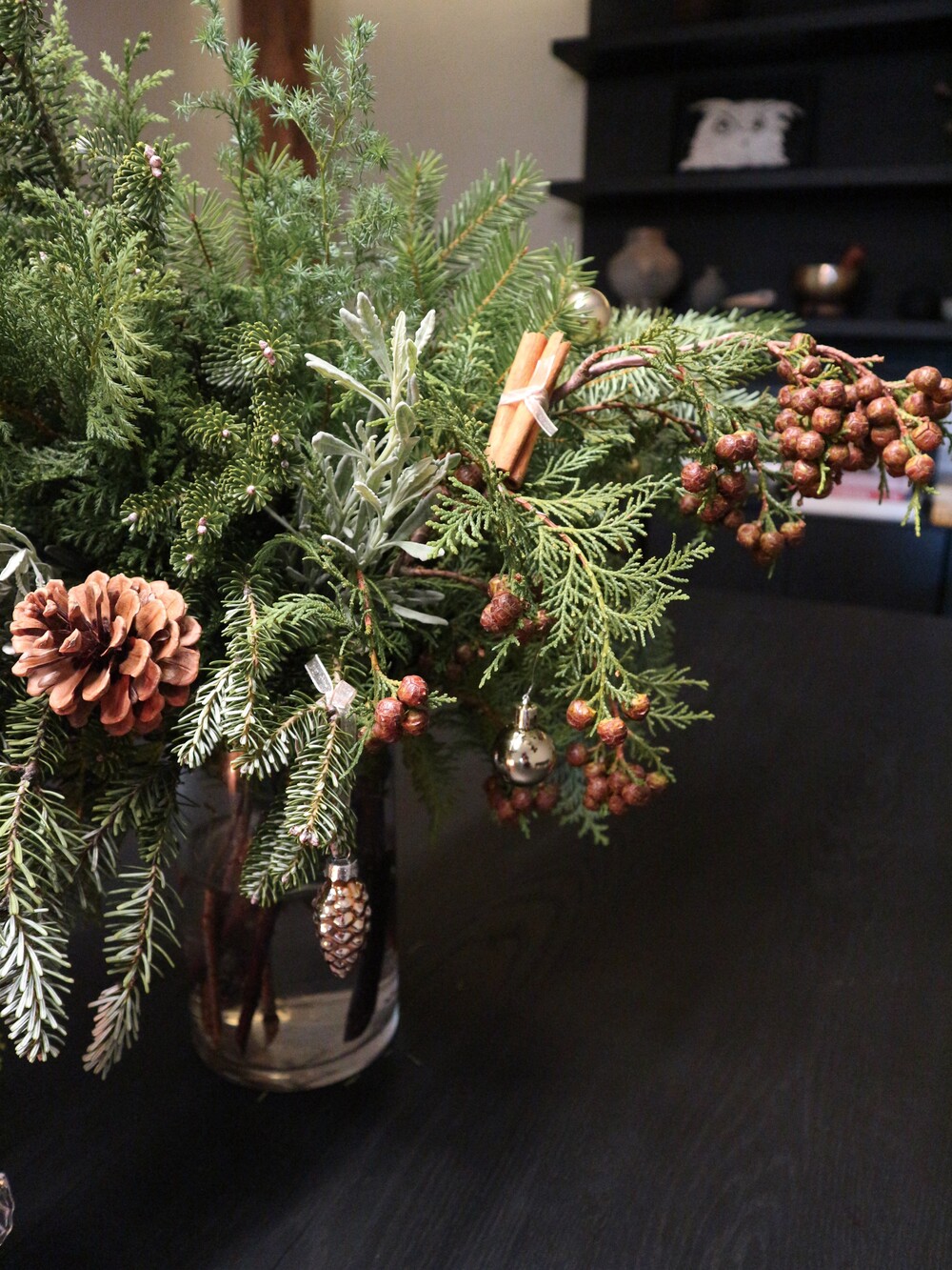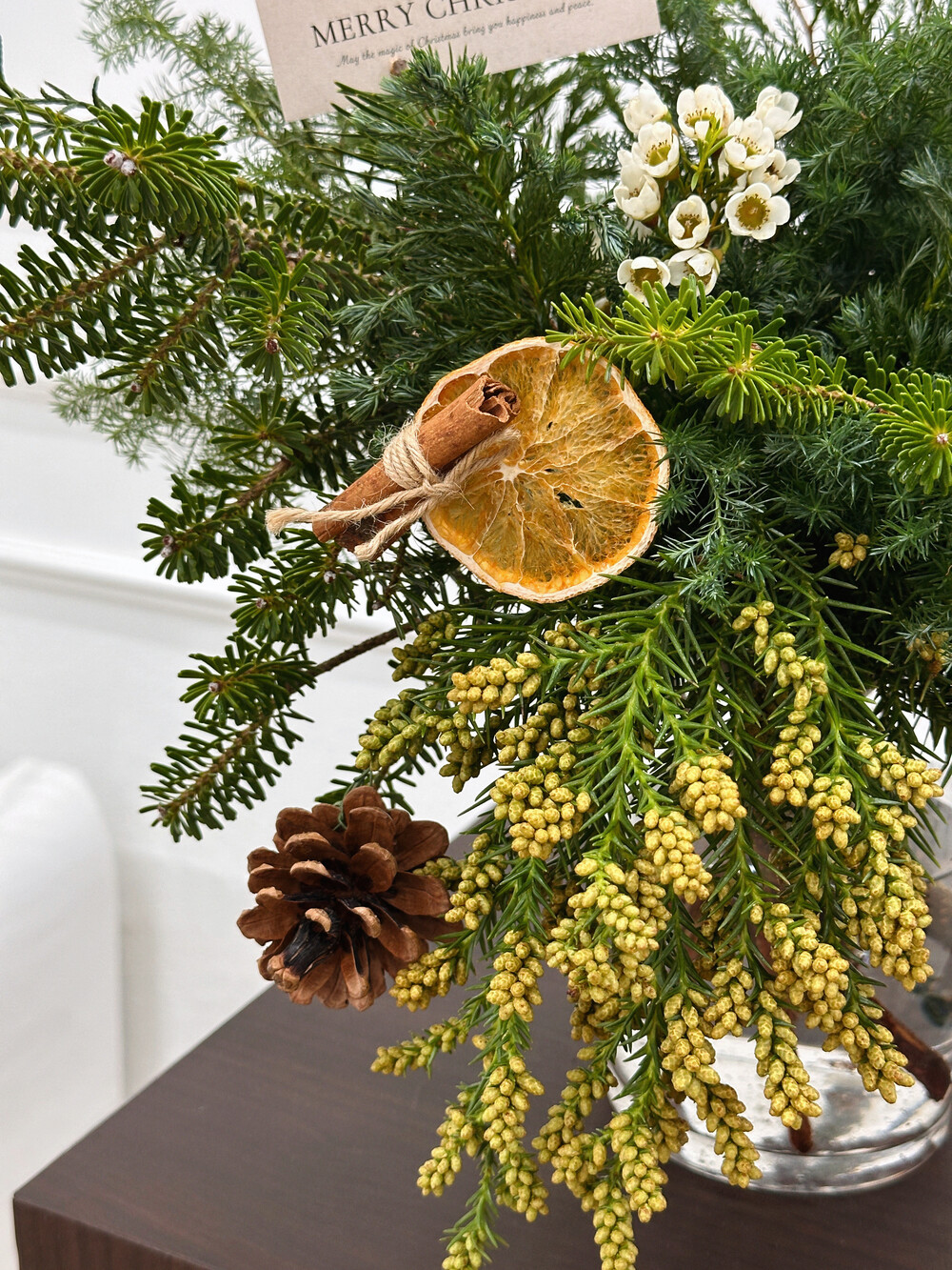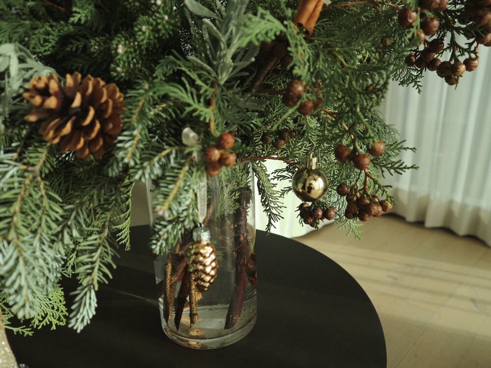 시나몬,오렌지,솔방울같은 자연 오너먼트들과 함께