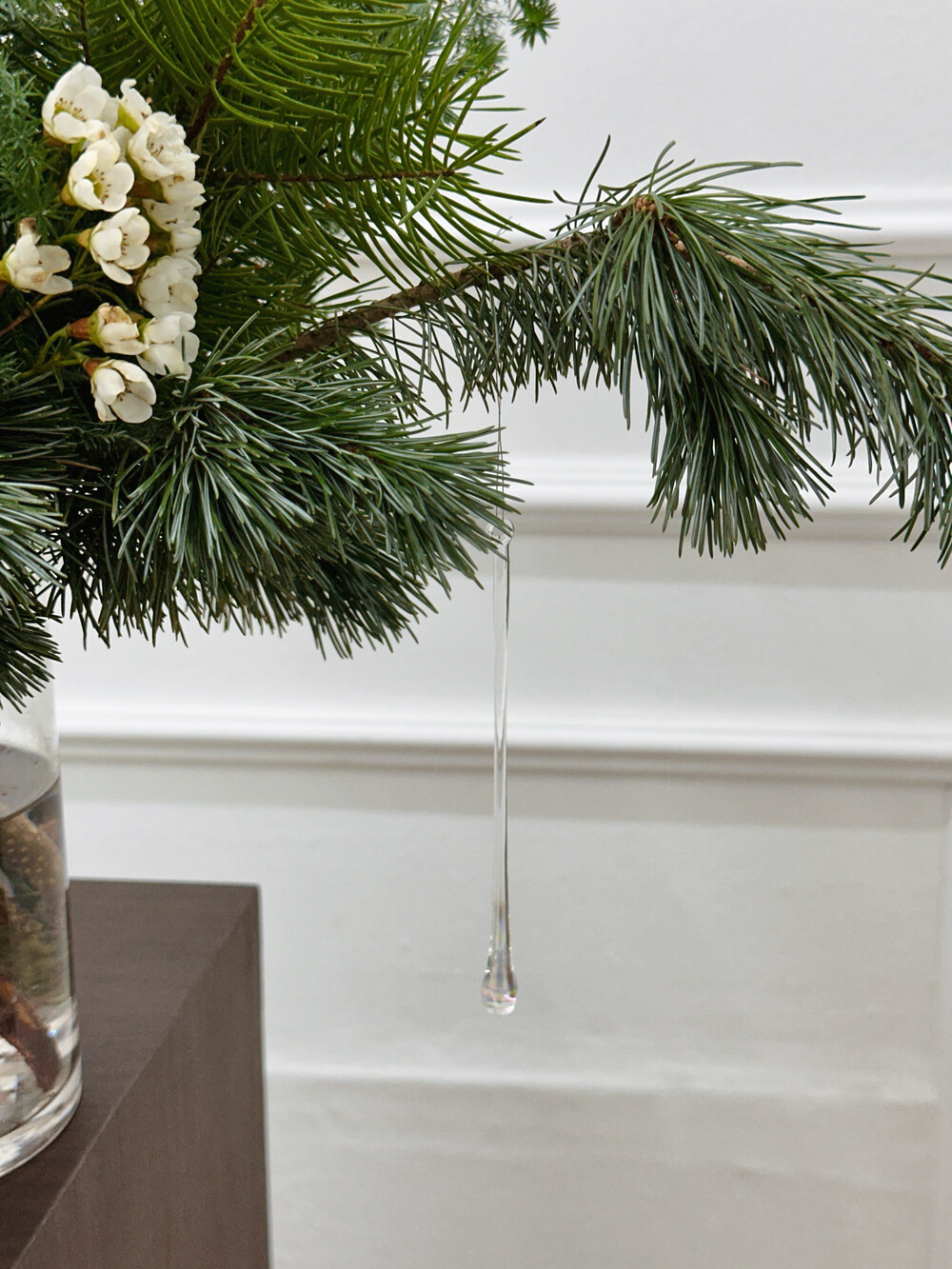 은은하게 반짝이는 슬림하고 긴라인의 물방울 유리오너먼트